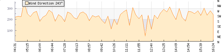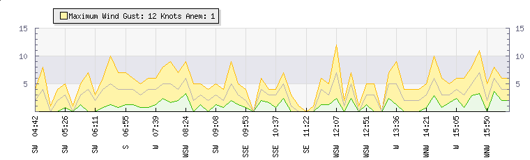 In the last few minutes the wind was South Westerly at an average speed of 6 knots, reaching up to 10 knots and a low of 3 knots. The gust strength is7 knots above the minimum speed |