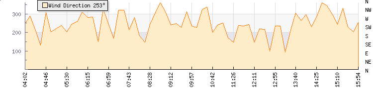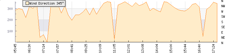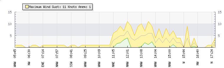 In the last few minutes the wind was North North West at an average speed of 0 knots, reaching up to 0 knots and a low of 0 knots. The gust strength is0 knots above the minimum speed |