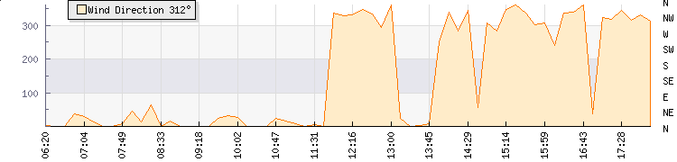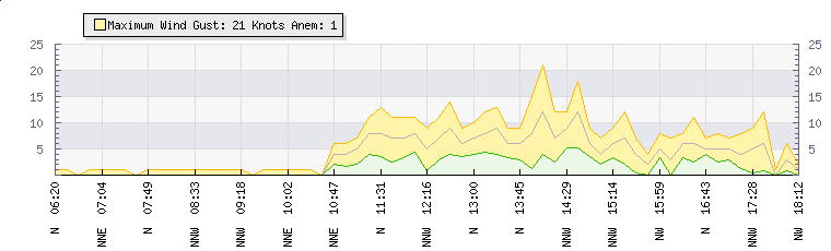 In the last few minutes the wind was North North West at an average speed of 6 knots, reaching up to 11 knots and a low of 2 knots. The gust strength is9 knots above the minimum speed |