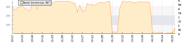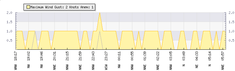 In the last few minutes the wind was North North West at an average speed of 1 knots, reaching up to 1 knots and a low of 0 knots. The gust strength is1 knots above the minimum speed |