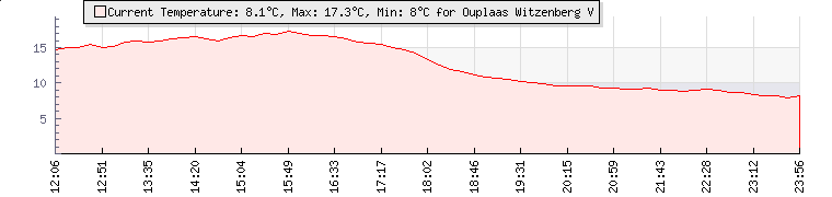 GPS Co-ordinates: | S 33º 9' 47, E 19º 8' 02 | ASL: | 2949 feet | Sunrise / Sunset: | 06:21 / 18:46 | Beaufort Scale: | Light Air |