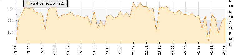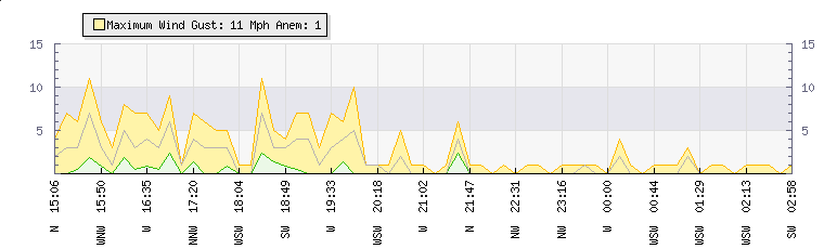 In the last few minutes the wind was North Westerly at an average speed of 1 mph, reaching up to 1 mph and a low of 0 mph. The gust strength is1 mph above the minimum speed |