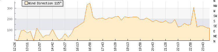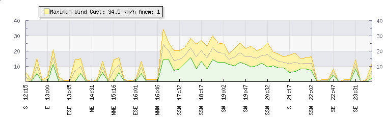 In the last few minutes the wind was South South East at an average speed of 1 kmh, reaching up to 2 kmh and a low of 0 kmh. The gust strength is2 kmh above the minimum speed |