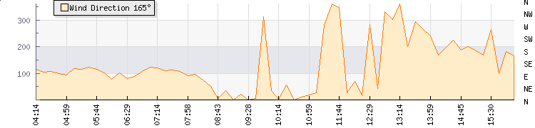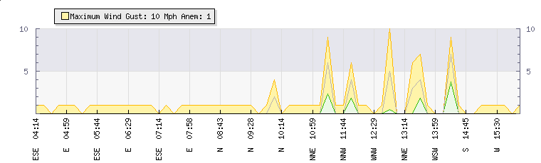 In the last few minutes the wind was South Westerly at an average speed of 1 mph, reaching up to 1 mph and a low of 0 mph. The gust strength is1 mph above the minimum speed |