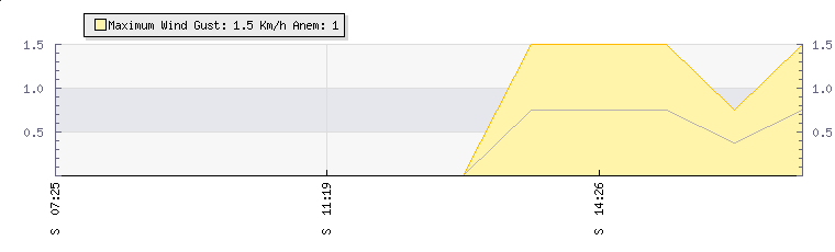 In the last few minutes the wind was Westerly at an average speed of 1 kmh, reaching up to 2 kmh and a low of 0 kmh. The gust strength is2 kmh above the minimum speed |