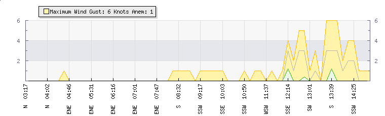 In the last few minutes the wind was South Easterly at an average speed of 0 knots, reaching up to 0 knots and a low of 0 knots. The gust strength is0 knots above the minimum speed |