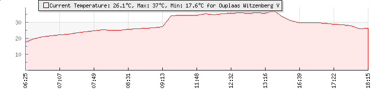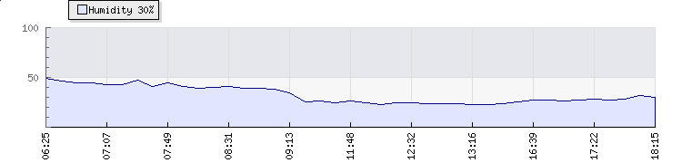 Wind Gust: | 4 km/h | Min Temp: | 15.1 °C | Max Temp: | 25.8 °C | Wind Average: | 2 km/h | Min Hum: | 39 % | Max Hum: | 58 % | |  |
