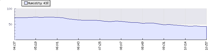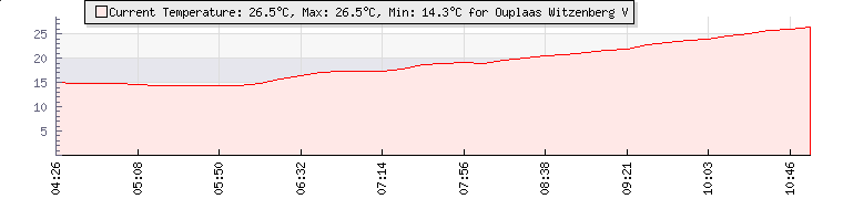 | Wind Gust: | 28 km/h | Min Temp: | 14.3 °C | Max Temp: | 26.5 °C | | Wind Average: | 19 km/h | Min Hum: | 42 % | Max Hum: | 73 % | |  |