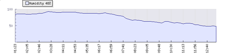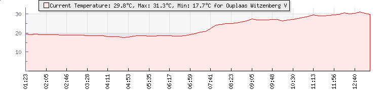 | Wind Gust: | 20 km/h | Min Temp: | 17.7 °C | Max Temp: | 29.5 °C | | Wind Average: | 14 km/h | Min Hum: | 55 % | Max Hum: | 93 % | |  |