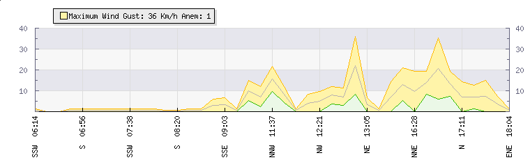 In the last few minutes the wind was Southerly at an average speed of 1 kmh, reaching up to 2 kmh and a low of 0 kmh. The gust strength is2 kmh above the minimum speed |