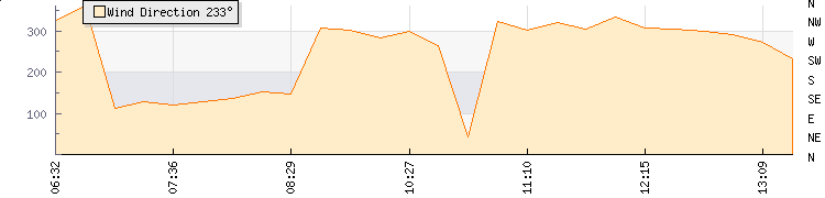 In the last few minutes the wind was South Westerly at an average speed of 9 kmh, reaching up to 17 kmh and a low of 1 kmh. The gust strength is16 kmh above the minimum speed |