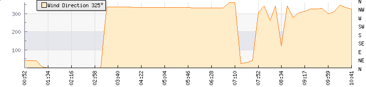 In the last few minutes the wind was North Westerly at an average speed of 15 kmh, reaching up to 23 kmh and a low of 8 kmh. The gust strength is15 kmh above the minimum speed |