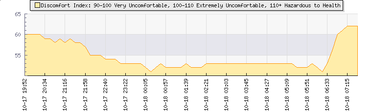 Wind Speed: | 0|1|2 kmh | Wind Direction: | WSW 245° | Temperature: | 11.9°C | Wet Bulb: | 7.8°C | Discomfort: | 55 | Humidity: | 61% | Rainfall Today: | 0mm | 12 hrs Rainfall: | 0mm | 24 hrs Rainfall: | 0mm | Barometer: | 1017.1mb | Dew Point: | 4.6°C | Clouds AGL: | 2912ft (888 m) | Density-Alt: | 709ft (216 m) | Fire Danger: | |