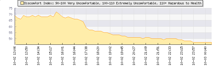 Wind Speed: | 4|8|12 mph | Wind Direction: | SSE 157° | Temperature: | 9.3°C | Wet Bulb: | 5.9°C | Discomfort: | 49 | Humidity: | 65% | Rainfall Today: | 25.4mm | 12 hrs Rainfall: | 0mm | 24 hrs Rainfall: | 25.4mm | Barometer: | 1024.1mb | Dew Point: | 3.1°C | Clouds AGL: | 2497ft (761 m) | Density-Alt: | 161ft (49 m) | Fire Danger: | |