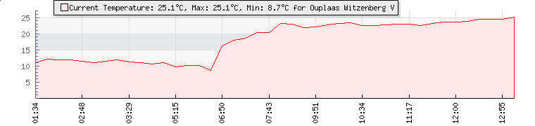 | Wind Gust: | 1 mph | Min Temp: | 8.7 °C | Max Temp: | 20.5 °C |  | Wind Average: | 1 mph | Min Hum: | 54 % | Max Hum: | 76 % |  |    |