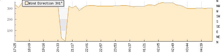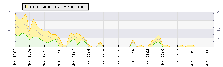 In the last few minutes the wind was North Westerly at an average speed of 1 mph, reaching up to 1 mph and a low of 0 mph. The gust strength is1 mph above the minimum speed |