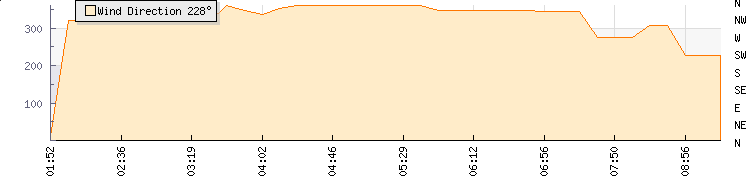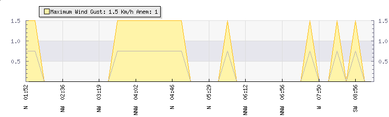 In the last few minutes the wind was Westerly at an average speed of 0 kmh, reaching up to 0 kmh and a low of 0 kmh. The gust strength is0 kmh above the minimum speed |