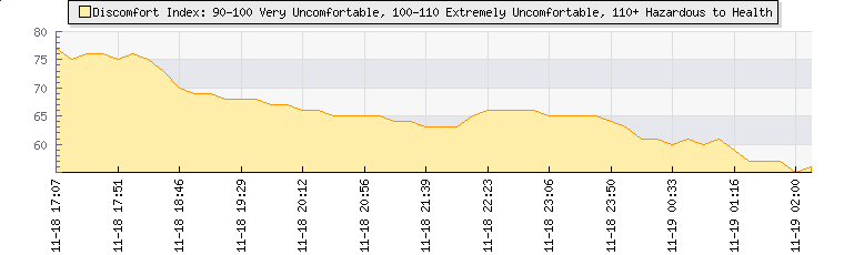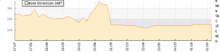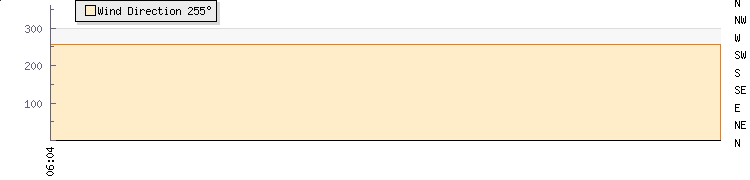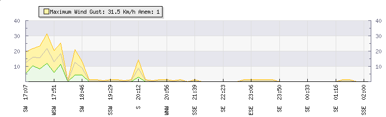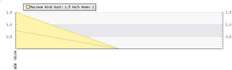 In the last few minutes the wind was West South West at an average speed of 0 kmh, reaching up to 0 kmh and a low of 0 kmh. The gust strength is0 kmh above the minimum speed |