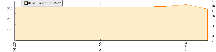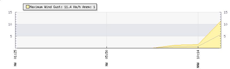 In the last few minutes the wind was North North West at an average speed of 1 kmh, reaching up to 2 kmh and a low of 0 kmh. The gust strength is2 kmh above the minimum speed |