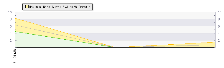 In the last few minutes the wind was North Easterly at an average speed of 0 kmh, reaching up to 0 kmh and a low of 0 kmh. The gust strength is0 kmh above the minimum speed |