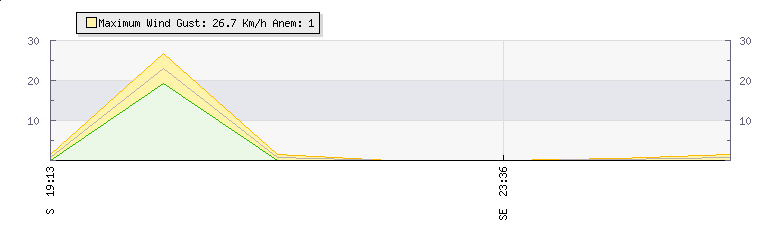 In the last few minutes the wind was South Easterly at an average speed of 0 kmh, reaching up to 0 kmh and a low of 0 kmh. The gust strength is0 kmh above the minimum speed |