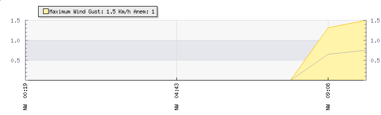 In the last few minutes the wind was North Westerly at an average speed of 0 kmh, reaching up to 0 kmh and a low of 0 kmh. The gust strength is0 kmh above the minimum speed |