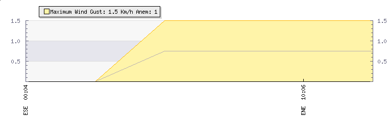 In the last few minutes the wind was East North East at an average speed of 1 kmh, reaching up to 2 kmh and a low of 0 kmh. The gust strength is2 kmh above the minimum speed |