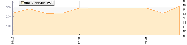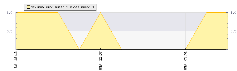 In the last few minutes the wind was South Westerly at an average speed of 1 knots, reaching up to 1 knots and a low of 0 knots. The gust strength is1 knots above the minimum speed |