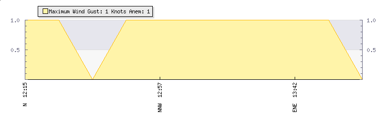 In the last few minutes the wind was North Easterly at an average speed of 0 knots, reaching up to 0 knots and a low of 0 knots. The gust strength is0 knots above the minimum speed |