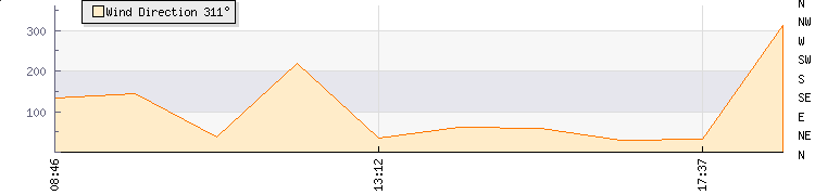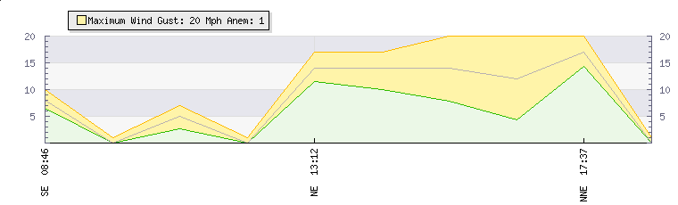In the last few minutes the wind was South Westerly at an average speed of 0 mph, reaching up to 0 mph and a low of 0 mph. The gust strength is0 mph above the minimum speed |