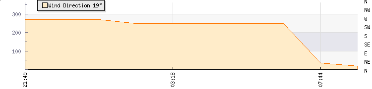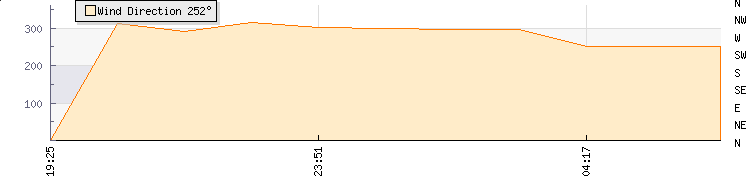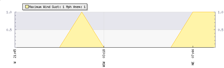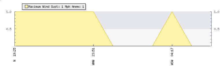 In the last few minutes the wind was West South West at an average speed of 0 mph, reaching up to 0 mph and a low of 0 mph. The gust strength is0 mph above the minimum speed |