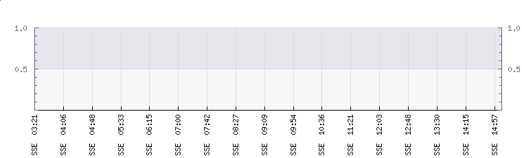 In the last few minutes the wind was South South East at an average speed of 0 mph, reaching up to 0 mph and a low of 0 mph. The gust strength is0 mph above the minimum speed |