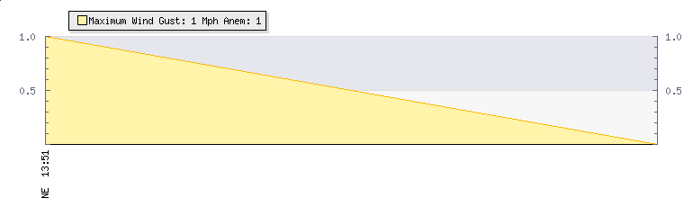 In the last few minutes the wind was North Easterly at an average speed of 0 mph, reaching up to 0 mph and a low of 0 mph. The gust strength is0 mph above the minimum speed |