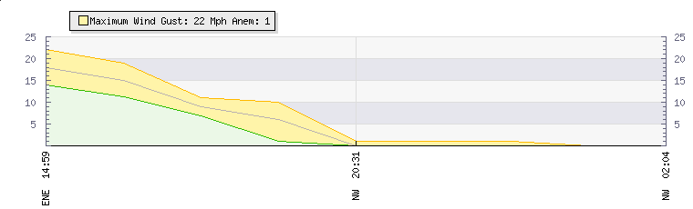 In the last few minutes the wind was North Westerly at an average speed of 0 mph, reaching up to 0 mph and a low of 0 mph. The gust strength is0 mph above the minimum speed |