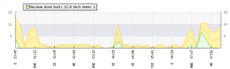 In the last few minutes the wind was Easterly at an average speed of 1 kmh, reaching up to 2 kmh and a low of 0 kmh. The gust strength is2 kmh above the minimum speed |