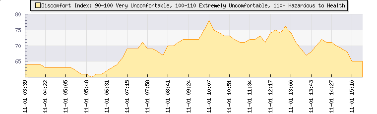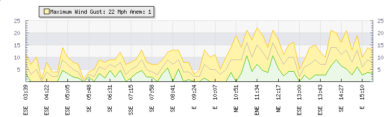 In the last few minutes the wind was East South East at an average speed of 1 mph, reaching up to 1 mph and a low of 0 mph. The gust strength is1 mph above the minimum speed |