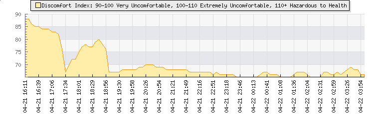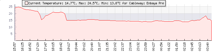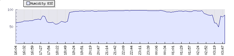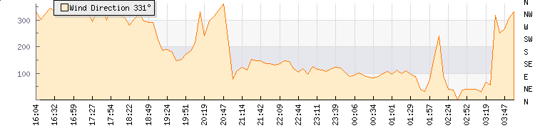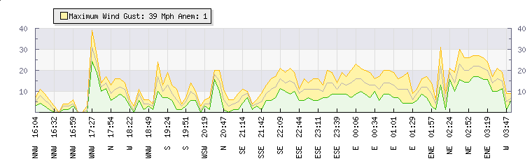 | Wind Gust: | 32 mph | Min Temp: | 13.8 °C | Max Temp: | 14.8 °C | | Wind Average: | 23 mph | Min Hum: | 88 % | Max Hum: | 97 % | |  |