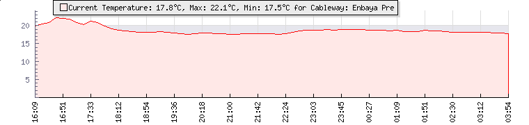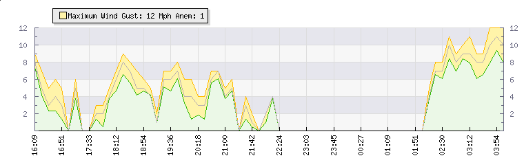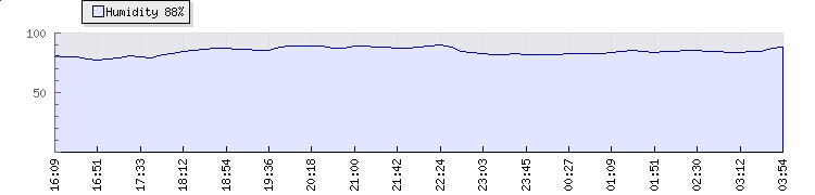 | Wind Gust: | 8 mph | Min Temp: | 18.3 °C | Max Temp: | 18.8 °C | | Wind Average: | 7 mph | Min Hum: | 82 % | Max Hum: | 86 % | |  |