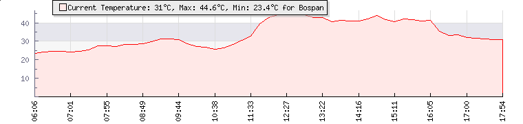| GPS Co-ordinates: | S 26º 14' 46, E 27º 20' 03 | | ASL: | 5091 feet | | Sunrise / Sunset: | 05:13 / 19:00 | | Beaufort Scale: | Light Breeze |