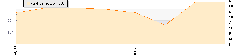 In the last few minutes the wind was Northerly at an average speed of 6 mph, reaching up to 7 mph and a low of 5 mph. The gust strength is2 mph above the minimum speed |