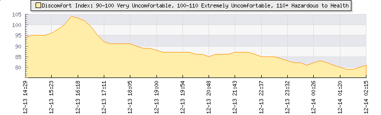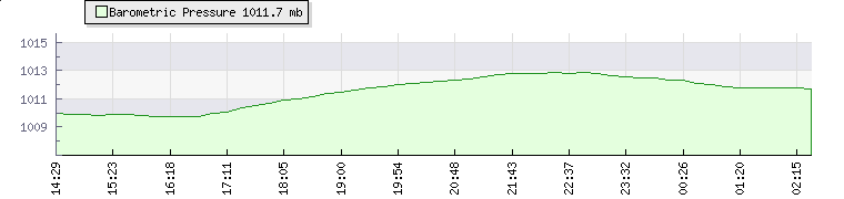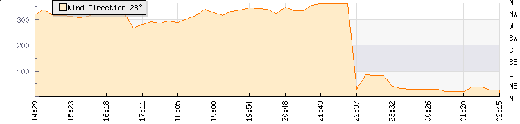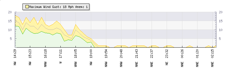 In the last few minutes the wind was Northerly at an average speed of 11 mph, reaching up to 14 mph and a low of 8 mph. The gust strength is6 mph above the minimum speed |
