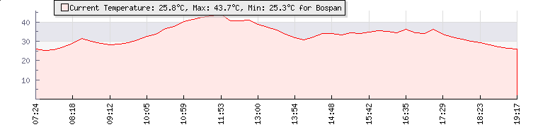 | GPS Co-ordinates: | S 26º 14' 46, E 27º 20' 03 | | ASL: | 5091 feet | | Sunrise / Sunset: | 05:54 / 18:56 | | Beaufort Scale: | Light Air |