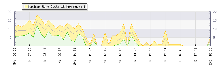 In the last few minutes the wind was Easterly at an average speed of 0 mph, reaching up to 0 mph and a low of 0 mph. The gust strength is0 mph above the minimum speed |