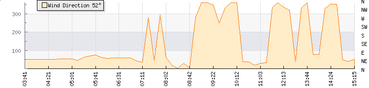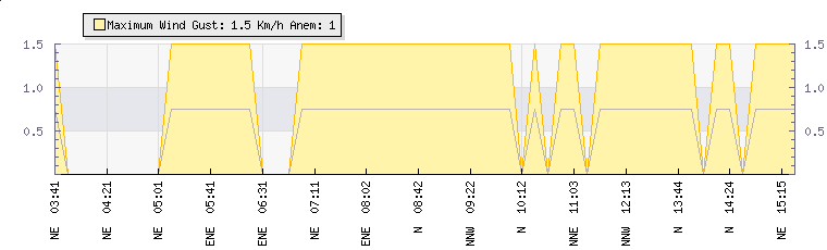 In the last few minutes the wind was North North East at an average speed of 0 kmh, reaching up to 0 kmh and a low of 0 kmh. The gust strength is0 kmh above the minimum speed |