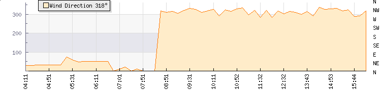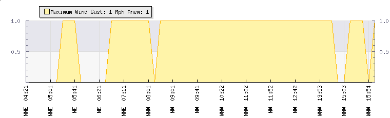 In the last few minutes the wind was North North West at an average speed of 1 mph, reaching up to 1 mph and a low of 0 mph. The gust strength is1 mph above the minimum speed |