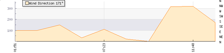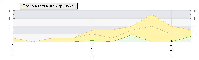 In the last few minutes the wind was North Westerly at an average speed of 2 mph, reaching up to 4 mph and a low of 0 mph. The gust strength is4 mph above the minimum speed |