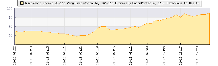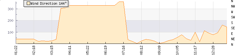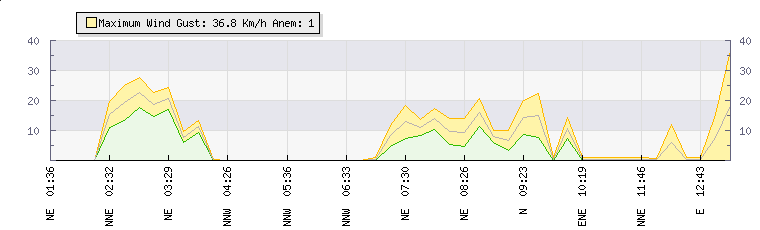 In the last few minutes the wind was Easterly at an average speed of 1 kmh, reaching up to 1 kmh and a low of 0 kmh. The gust strength is1 kmh above the minimum speed |
