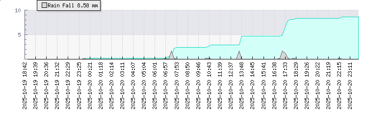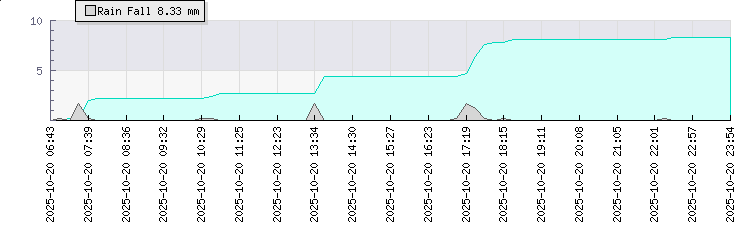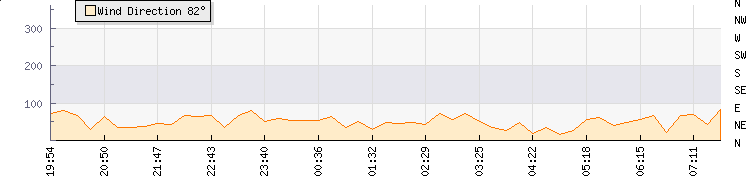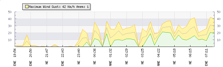 In the last few minutes the wind was East North East at an average speed of 8 kmh, reaching up to 17 kmh and a low of 0 kmh. The gust strength is17 kmh above the minimum speed |