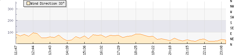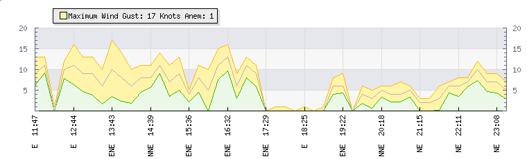 In the last few minutes the wind was North Easterly at an average speed of 2 knots, reaching up to 3 knots and a low of 0 knots. The gust strength is3 knots above the minimum speed |