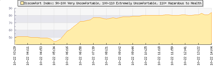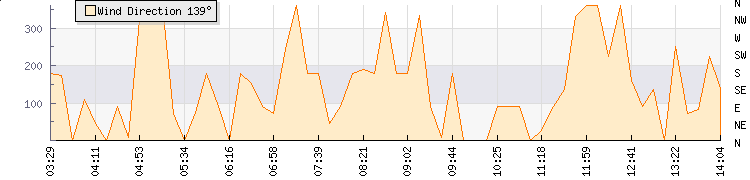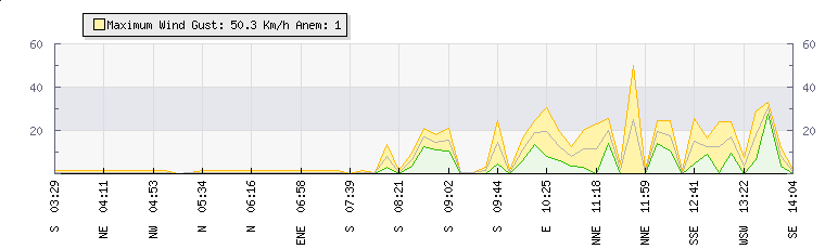 In the last few minutes the wind was Southerly at an average speed of 1 kmh, reaching up to 2 kmh and a low of 0 kmh. The gust strength is2 kmh above the minimum speed |